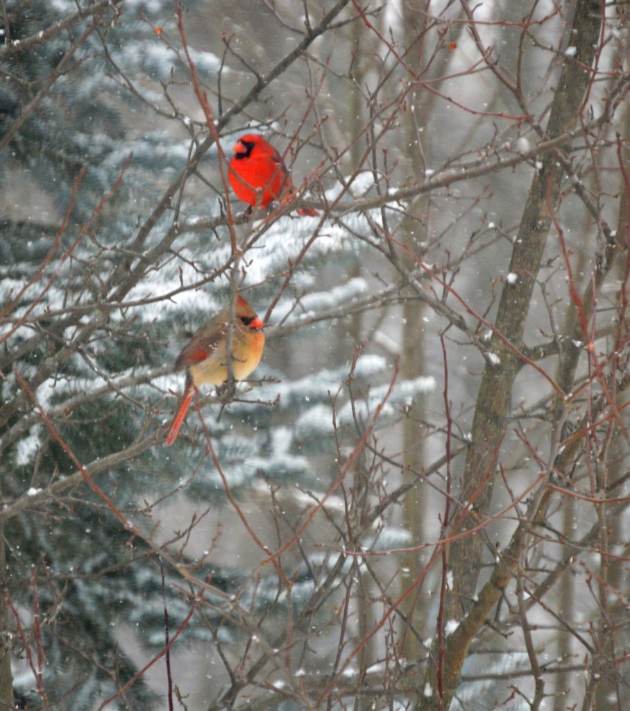 I agree, we need couple’s counseling. You’ve always held it against me that I am the most colorful. When people think “cardinal,” they always think “bright red,” not “deeply drab.” We males are the ones who show up on greeting cards, calendars, and Christmas sweaters. You’ve had a chip on your wing about it all your life.